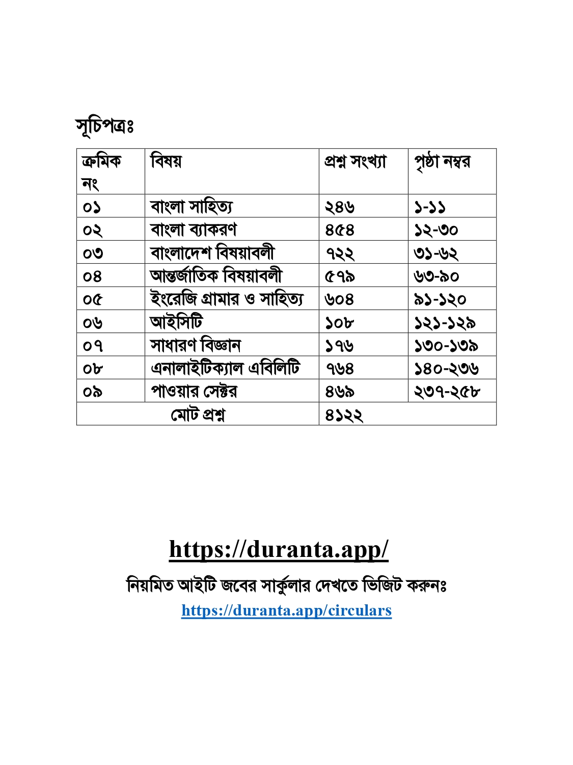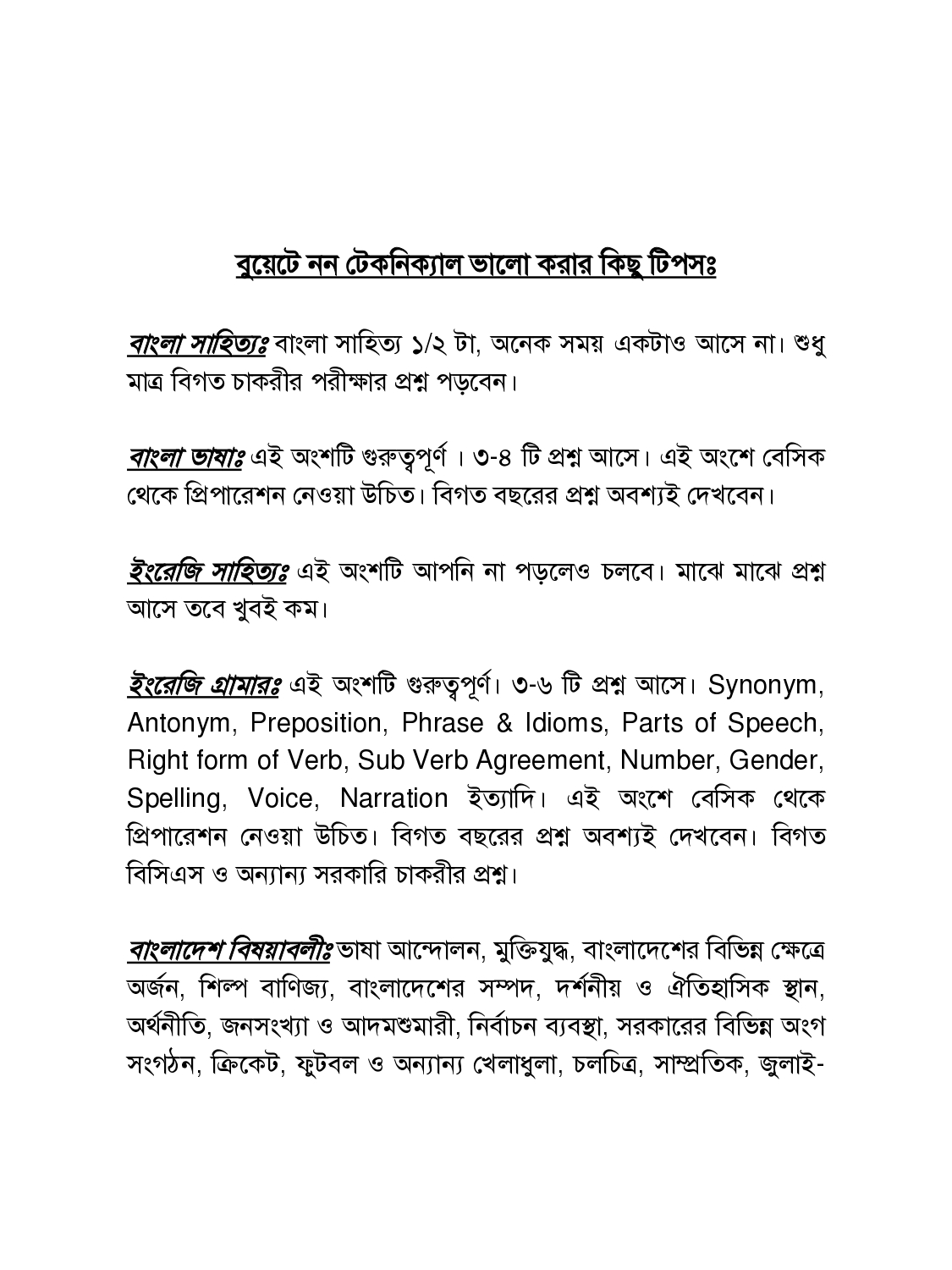 বাংলা সাহিত্যঃ বাংলা সাহিত্য ১/২ টা, অনেক সময় একটাও আসে না। শুধু মাত্র বিগত চাকরীর পরীক্ষার প্রশ্ন পড়বেন।