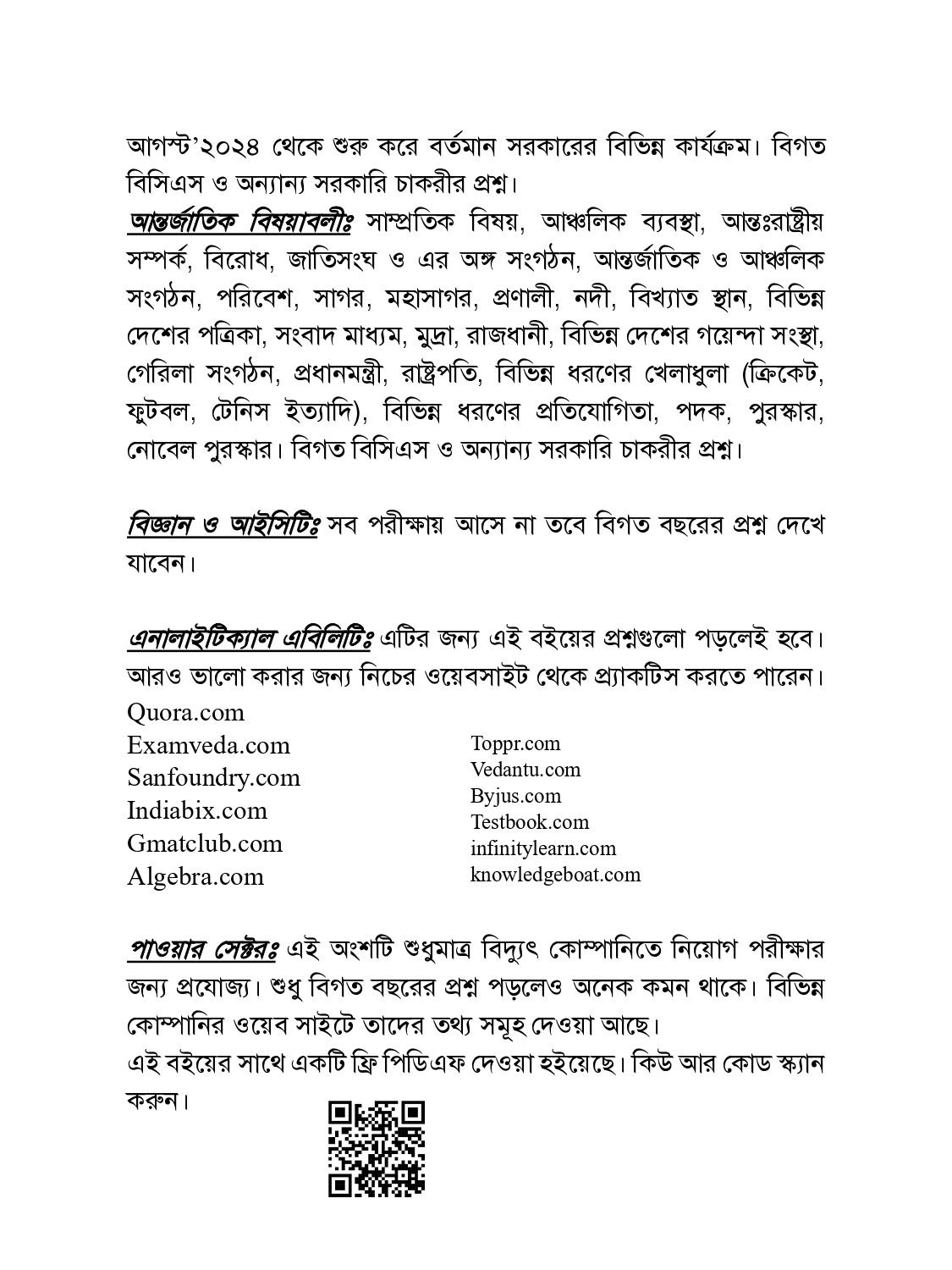 পাওয়ার সেক্টরঃ এই অংশটি শুধুমাত্র বিদ্যুৎ কোম্পানিতে নিয়োগ পরীক্ষার জন্য প্রযোজ্য। শুধু বিগত বছরের প্রশ্ন পড়লেও অনেক কমন থাকে। বিভিন্ন কোম্পানির ওয়েব সাইটে তাদের তথ্য সমূহ দেওয়া আছে।