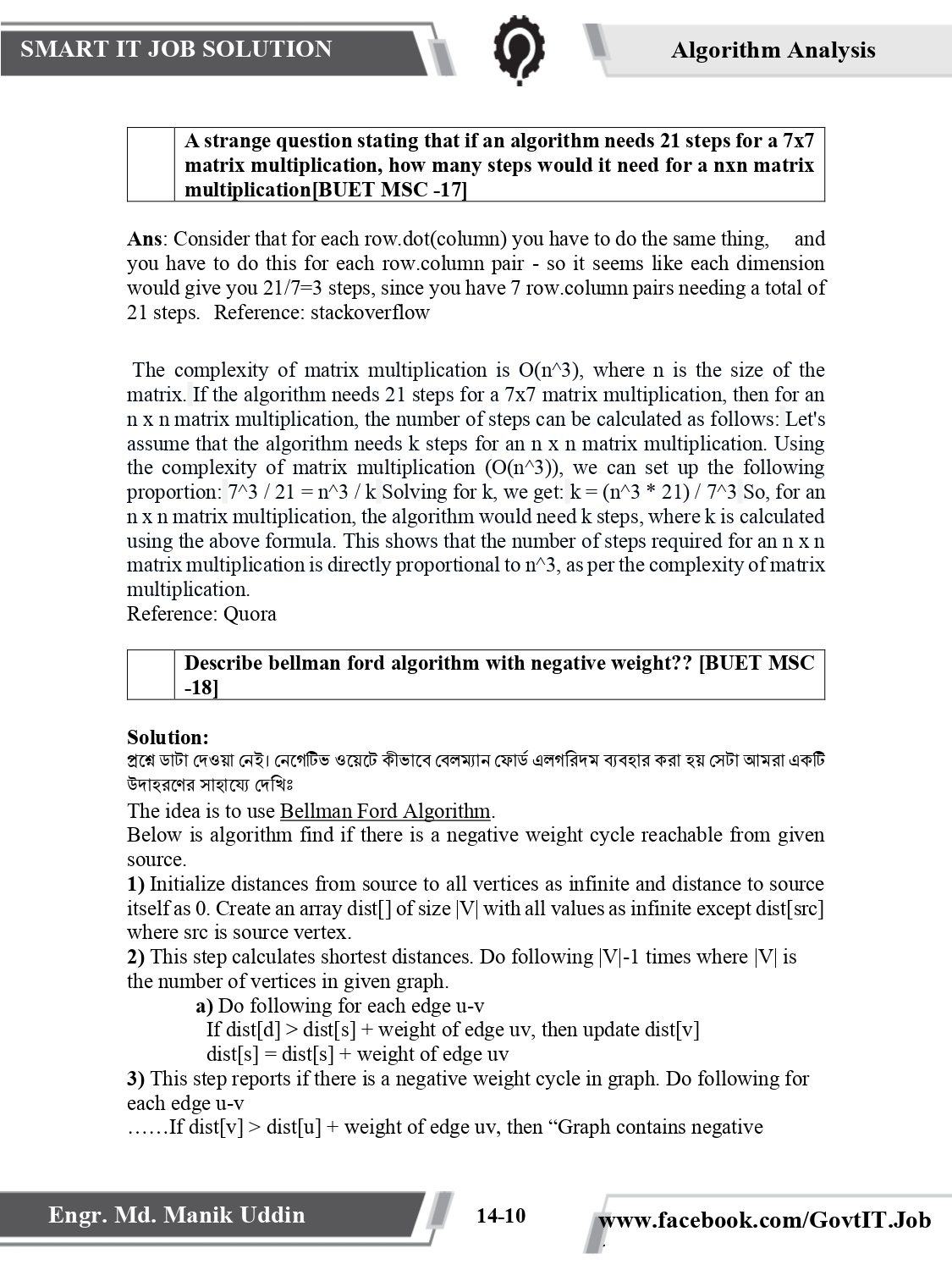 Engineering Non Technical Job Solution- BUET Pattern