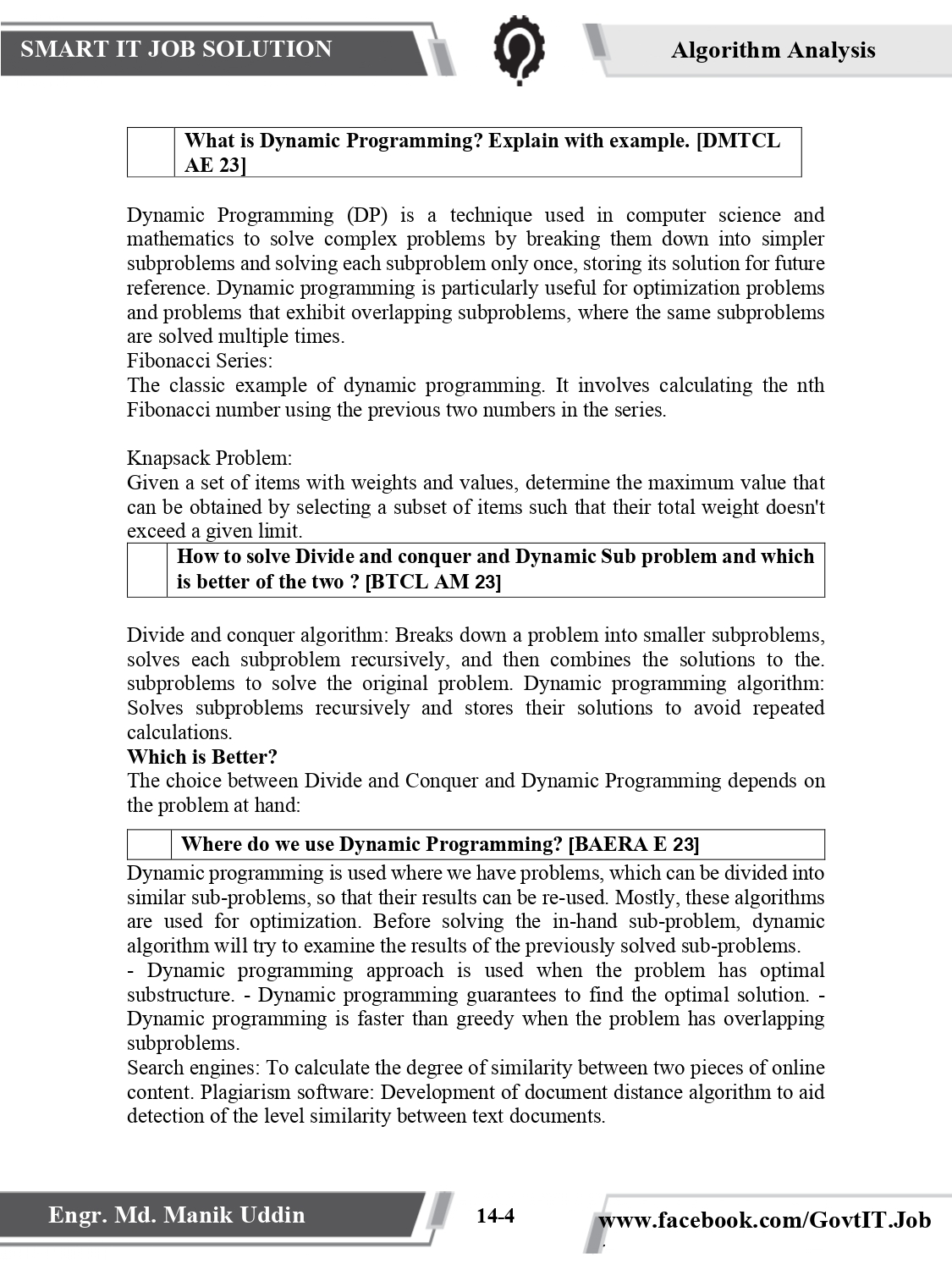 PSC Pattern Written IT Job Solution